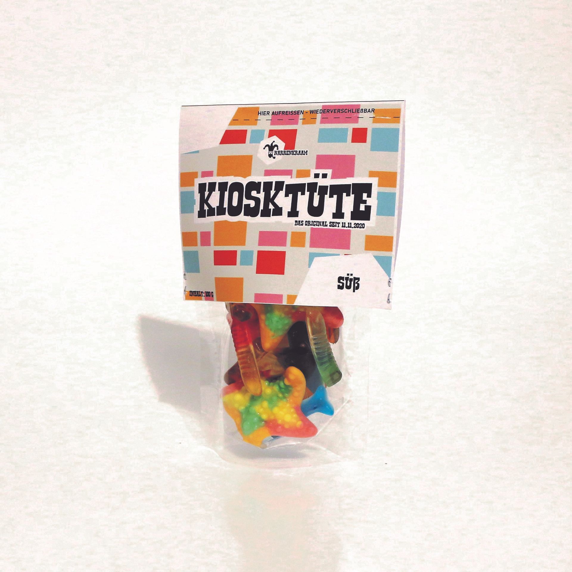 So entstand das erste offizielle Produkt: Die NarrenKraam Kiosktüte, erhältlich in den Varianten Klassisch, Sauer und Lakritz.